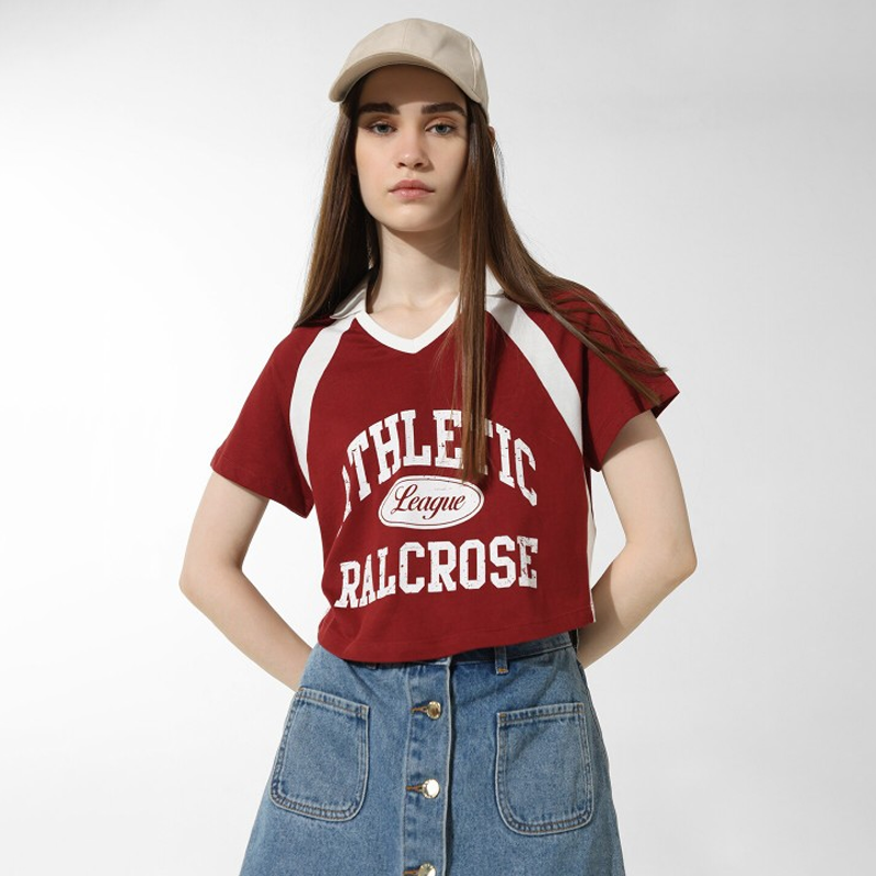 Onldowntown Varsity Printed Raglan Sleeves Pure Cotton Boxy Crop T-shirt